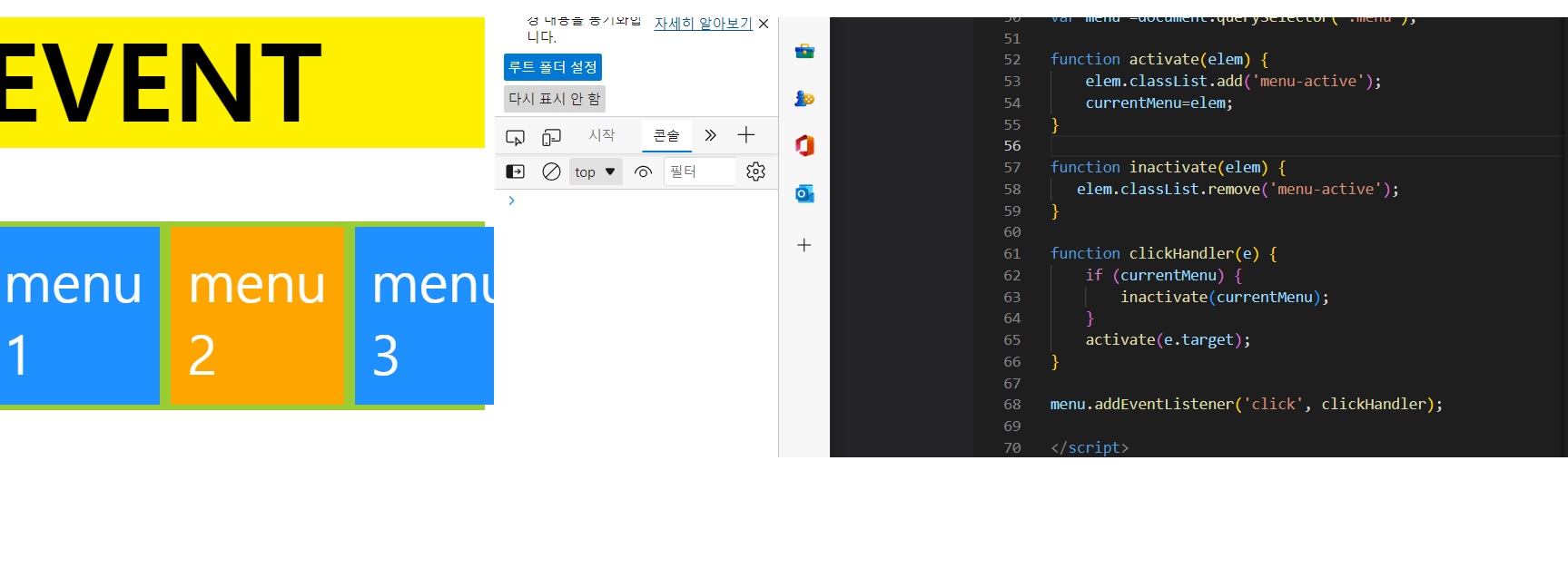 | [이벤트]버튼 누르면 색 변환 (0) | 2022.10.30 |