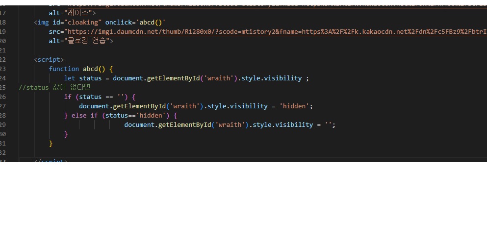if문과 새로운 함수 명을 입력해서 클릭하면 사라지고 또 한번 클릭하면 사라지게 한다.