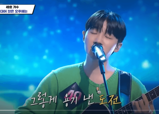찐무명조이긴 하지만 서울예술대학 실용음악과 학생으로 부모님이 운영하는 캠핑장에서 공연을 하고 있습니다. 보컬로는 나무랄 데 없는 모습을 보여주고 있습니다. 골목길, 곡예사의 첫사랑, 내가 제일 잘 나가, 소리쳐 봐를 불렀습니다. 코쿤은 소리쳐 봐를 들으며 흥분한 나머지 방송 중 욕설이 나올 정도라며 충격에 휩싸인 반응을 보이기도 했습니다.