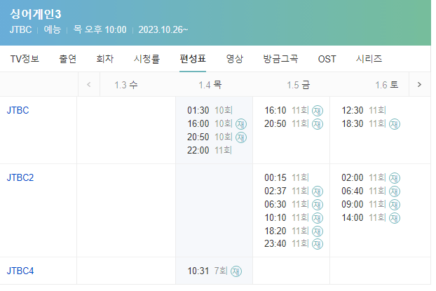 싱어게인 시즌 3 시청률은 의례적으로 상위권에 속할 정도로 인기 있는 프로그램입니다.