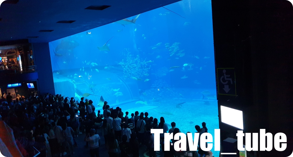 정말 거대한 수족관에서 큰 고래를 볼 수 있습니다. 정말 압도적인 장관에 넋을 잃고 보게 합니다.