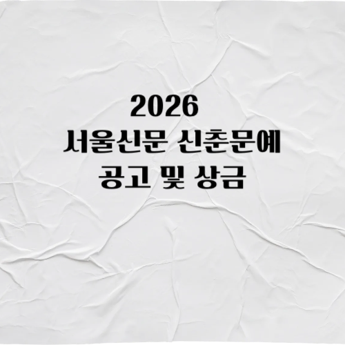 2026년 서울신문 신춘문예 공모를 안내합니다. 마감은 12월 1일 현장접수 오후 6시까지이며 상금은 단편소설 700만 원이고 시 3편은 500만 원입니다.