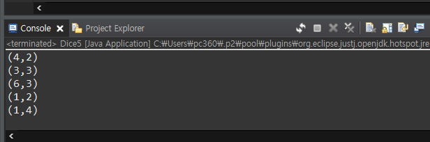 while (true) 형태이고 if 문으로 두 수가 5가 될 때면 멈춘다.
