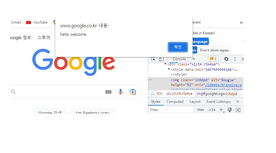 2. document.getElementByid('googleLogo') 를 치면 해당 문구를 불러올 수 있다.